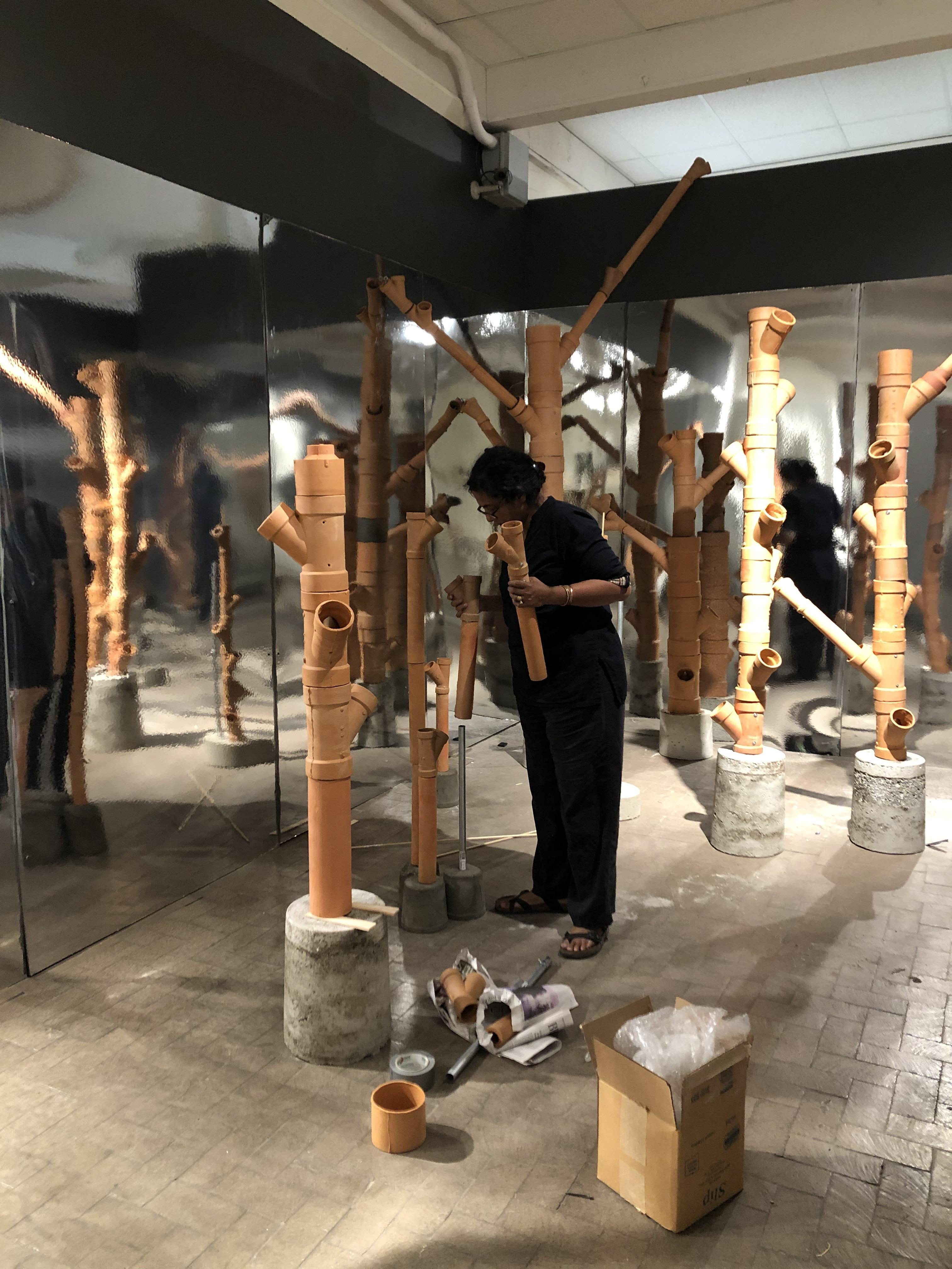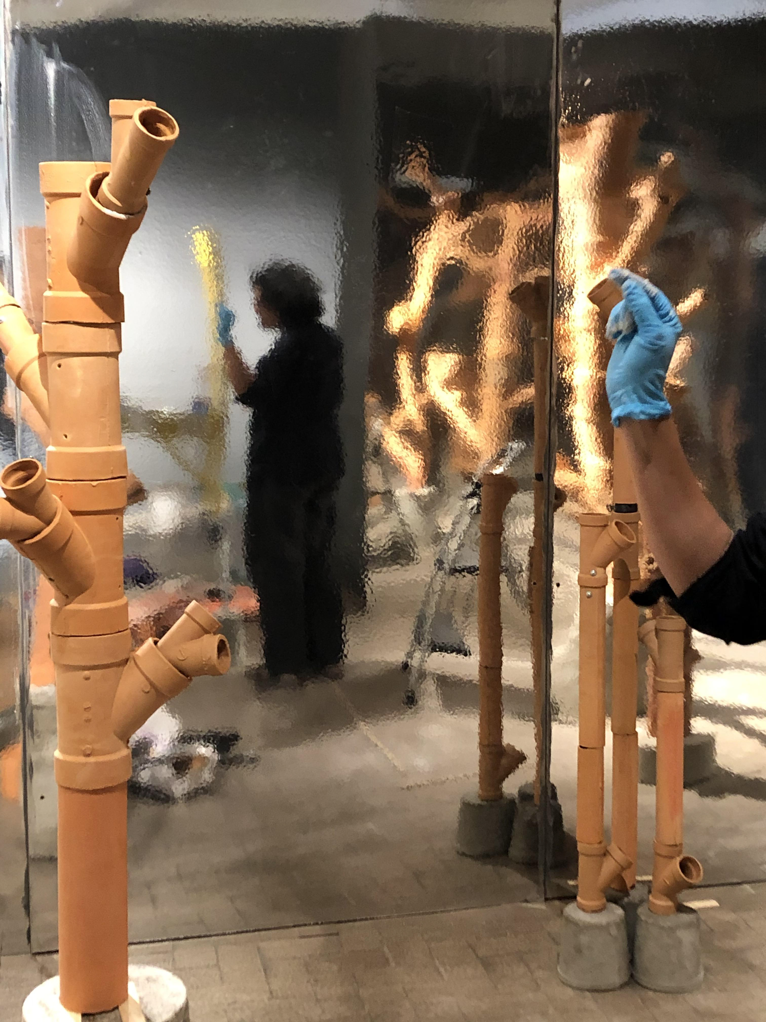 Fool's Gold: By 2050 there will be more plastic in the ocean than living creatures. Ceramic sails, knotted in rope patterns derived from fishing nets and ocean buoys, trawl the depths of a plastic ocean (made out of salvaged plastic sheeting from an abandoned greenhouse).